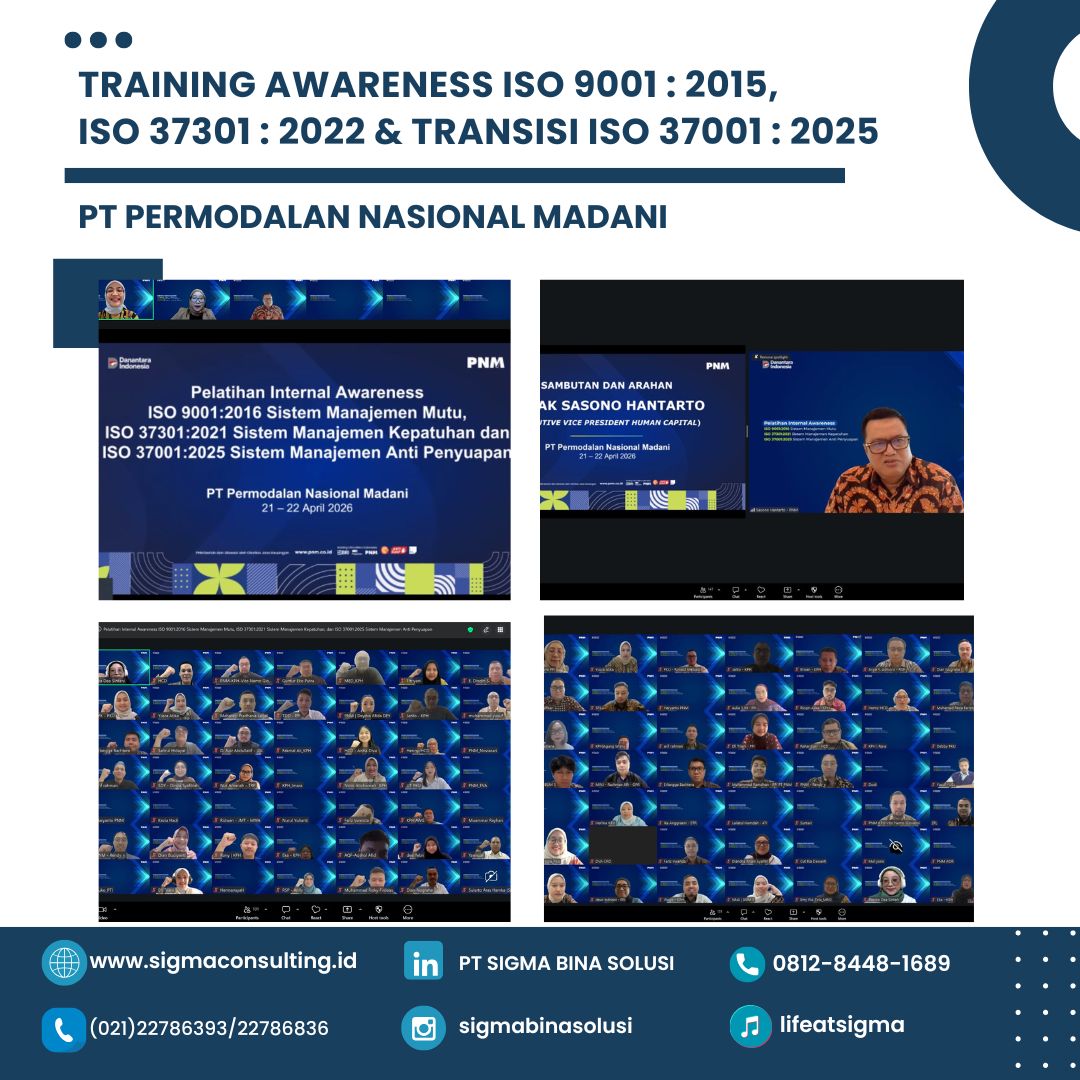 PT Permodalan Nasional Madani (PNM) kembali menunjukkan komitmennya dalam memperkuat tata kelola perusahaan melalui penyelenggaraan Training Awareness yang mencakup ISO 9001:2015, ISO 37301:2022, serta transisi ISO 37001:2025. Kegiatan ini dilaksanakan pada tanggal 21–22 April 2026 dan melibatkan berbagai perwakilan internal perusahaan.